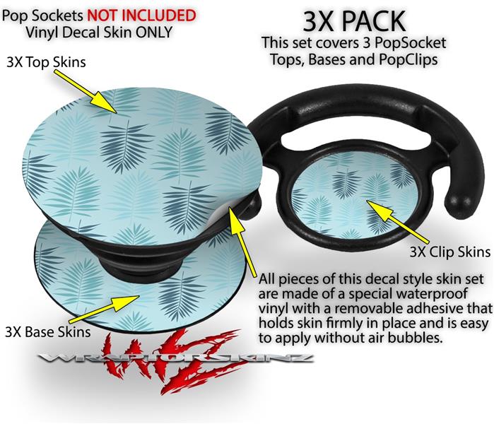 Decal Style Vinyl Skin Wrap 3 Pack for PopSockets Palms 01 Blue On Blue (POPSOCKET NOT INCLUDED)