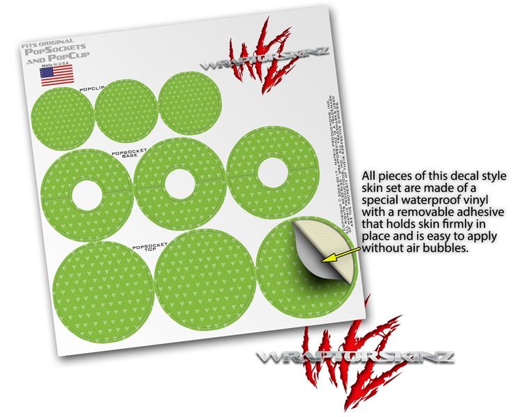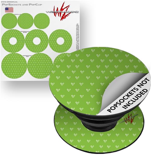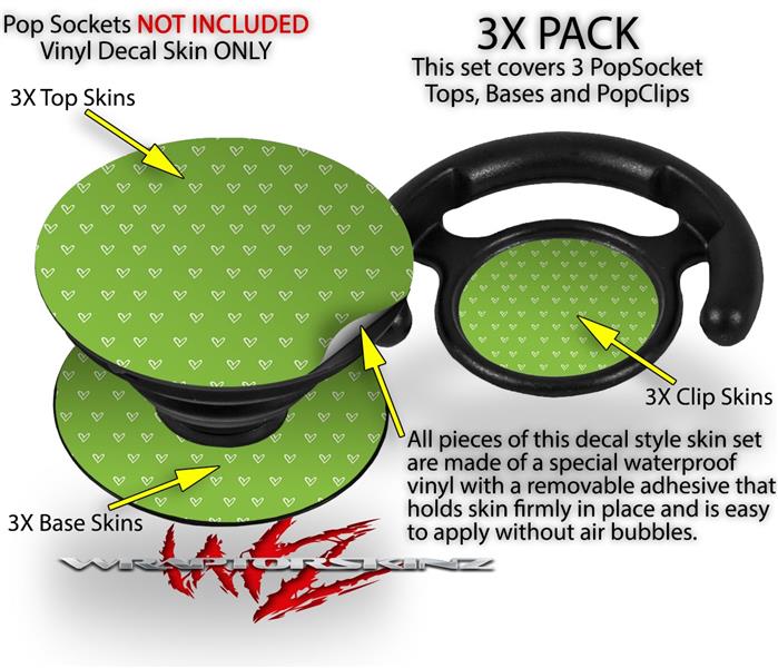 Decal Style Vinyl Skin Wrap 3 Pack for PopSockets Hearts Green On White (POPSOCKET NOT INCLUDED)