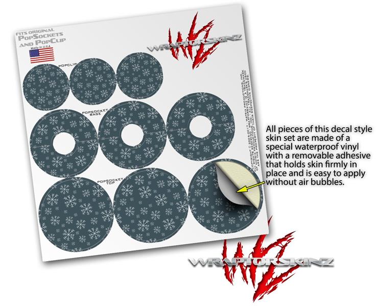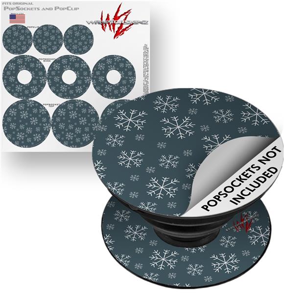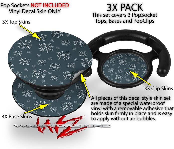 Decal Style Vinyl Skin Wrap 3 Pack for PopSockets Winter Snow Dark Blue (POPSOCKET NOT INCLUDED)