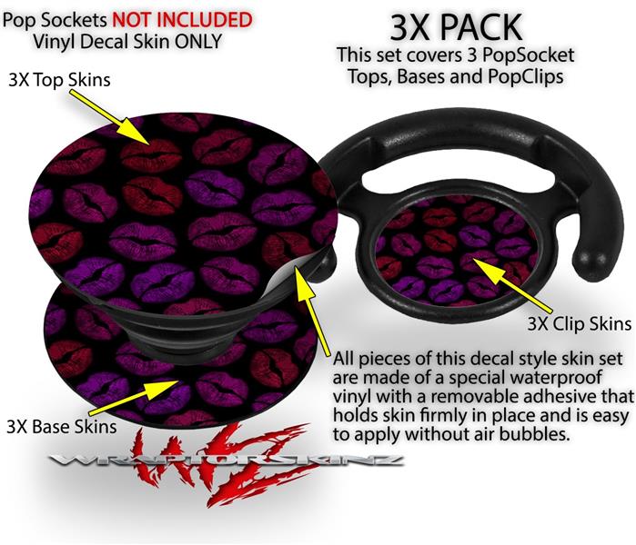 Decal Style Vinyl Skin Wrap 3 Pack for PopSockets Red Pink And Black Lips (POPSOCKET NOT INCLUDED)