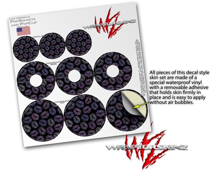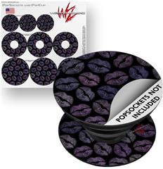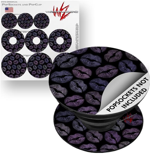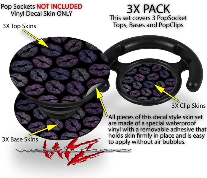 Decal Style Vinyl Skin Wrap 3 Pack for PopSockets Purple And Black Lips (POPSOCKET NOT INCLUDED)