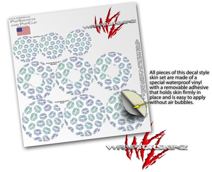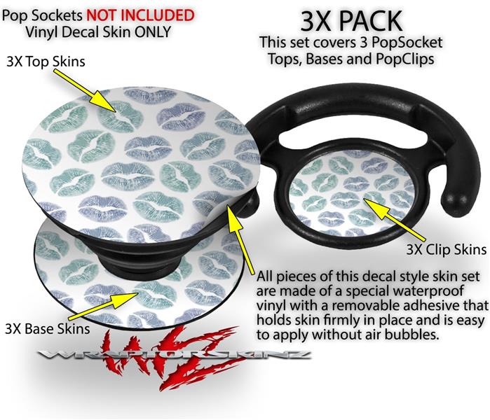 Decal Style Vinyl Skin Wrap 3 Pack for PopSockets Blue Green Lips (POPSOCKET NOT INCLUDED)