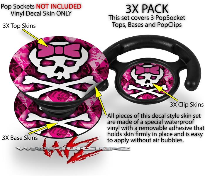 Decal Style Vinyl Skin Wrap 3 Pack for PopSockets Pink Bow Princess (POPSOCKET NOT INCLUDED)