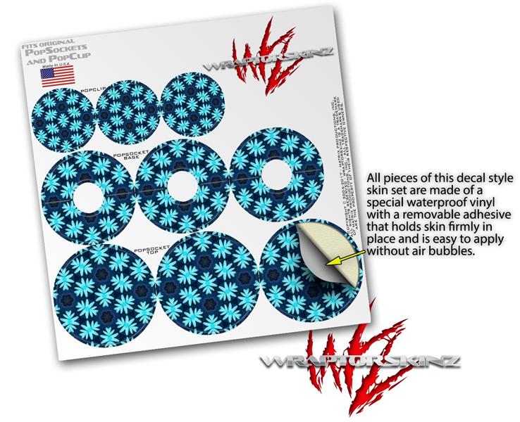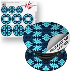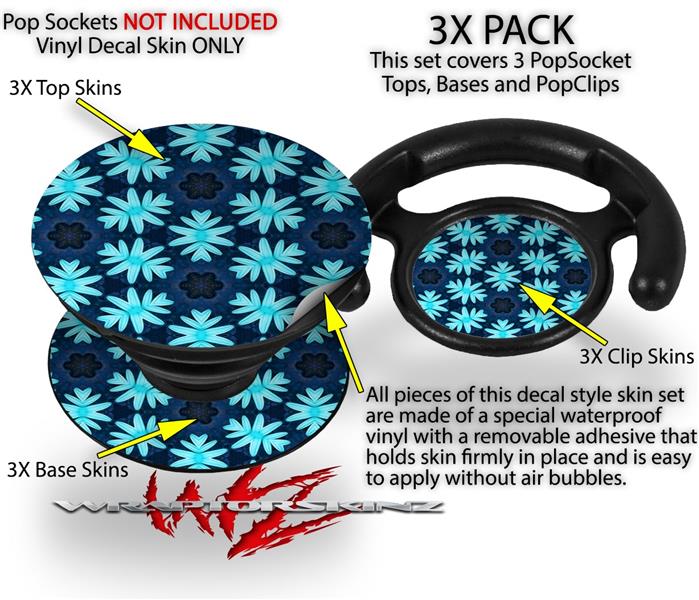 Decal Style Vinyl Skin Wrap 3 Pack for PopSockets Abstract Floral Blue (POPSOCKET NOT INCLUDED)