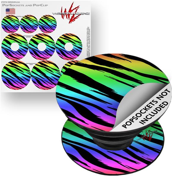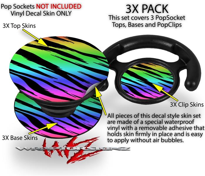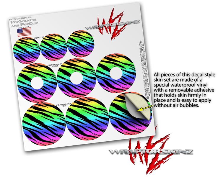 Decal Style Vinyl Skin Wrap 3 Pack for PopSockets Tiger Rainbow (POPSOCKET NOT INCLUDED)