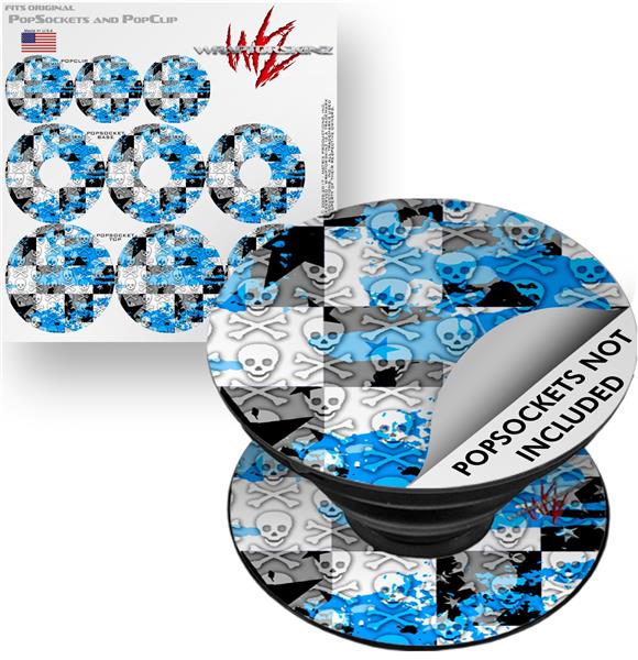 Decal Style Vinyl Skin Wrap 3 Pack for PopSockets Checker Skull Splatter Blue (POPSOCKET NOT INCLUDED)