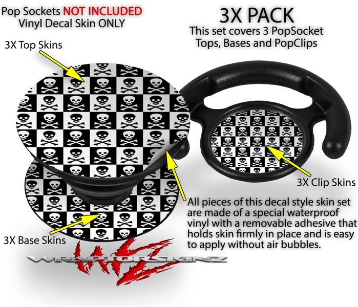 Decal Style Vinyl Skin Wrap 3 Pack for PopSockets Skull Checkerboard (POPSOCKET NOT INCLUDED)