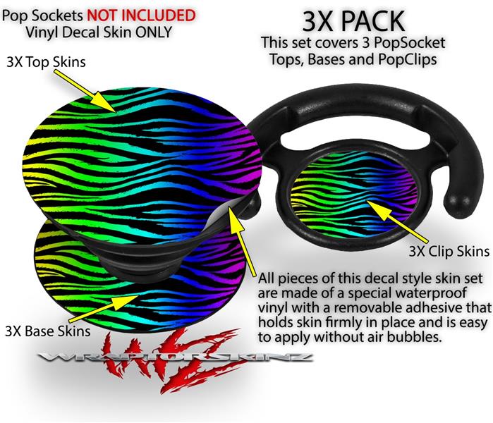 Decal Style Vinyl Skin Wrap 3 Pack for PopSockets Rainbow Zebra (POPSOCKET NOT INCLUDED)