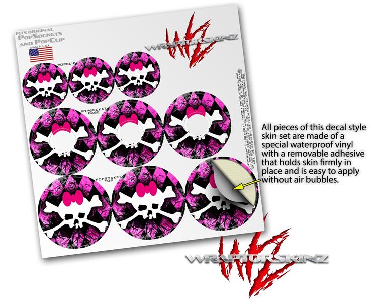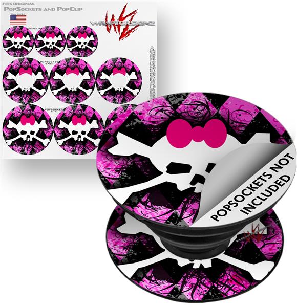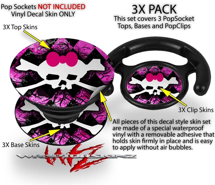 Decal Style Vinyl Skin Wrap 3 Pack for PopSockets Pink Diamond Skull (POPSOCKET NOT INCLUDED)