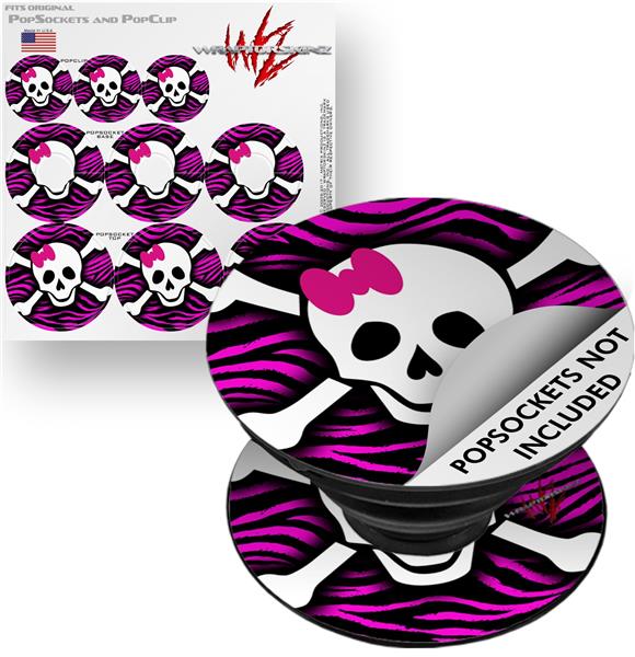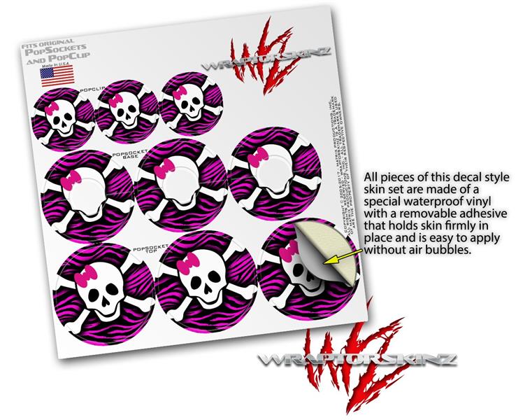 Decal Style Vinyl Skin Wrap 3 Pack for PopSockets Pink Zebra Skull (POPSOCKET NOT INCLUDED)