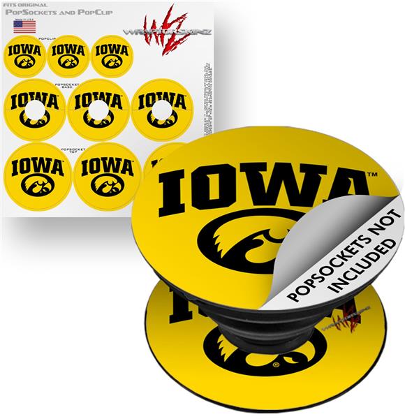 Decal Style Vinyl Skin Wrap 3 Pack for PopSockets Iowa Hawkeyes Tigerhawk Oval 01 Black on Gold (POPSOCKET NOT INCLUDED)