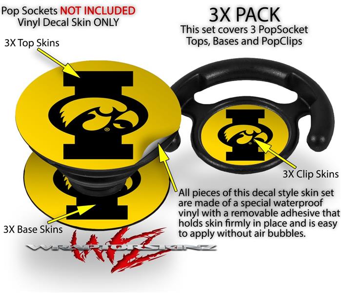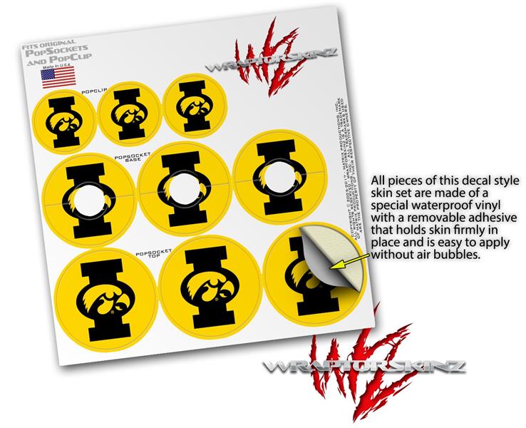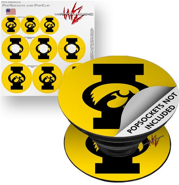 Decal Style Vinyl Skin Wrap 3 Pack for PopSockets Iowa Hawkeyes Tigerhawk Oval 02 Black on Gold (POPSOCKET NOT INCLUDED)