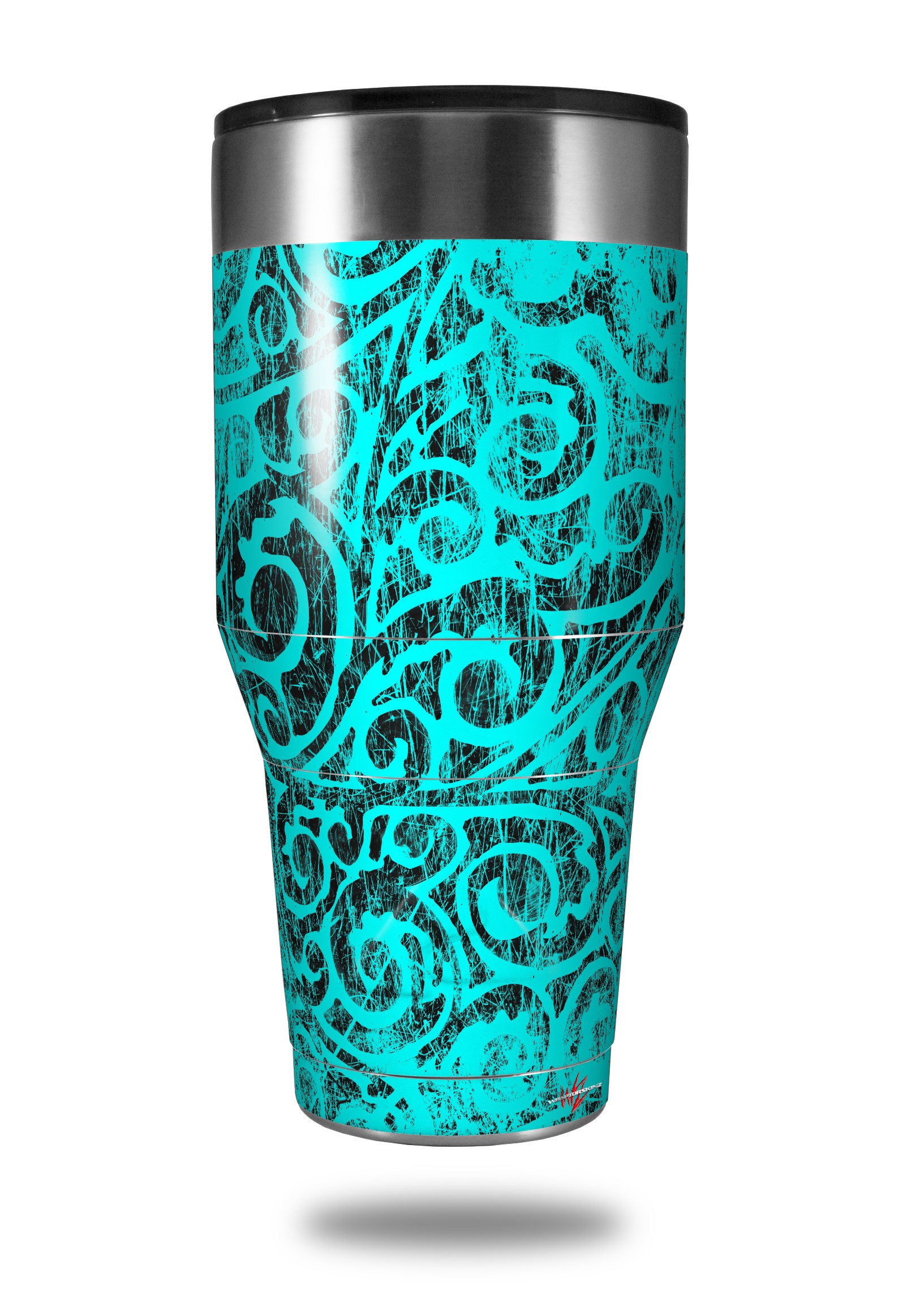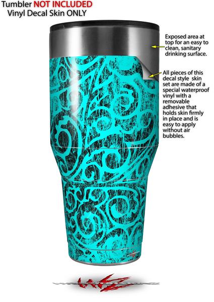 Skin Decal Wrap for Walmart Ozark Trail Tumblers 40oz Folder Doodles Neon Teal (TUMBLER NOT INCLUDED) by WraptorSkinz
