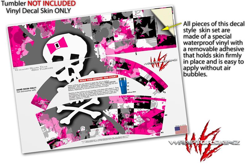 Skin Decal Wrap for Walmart Ozark Trail Tumblers 40oz Girly Pink Bow Skull (TUMBLER NOT INCLUDED) by WraptorSkinz