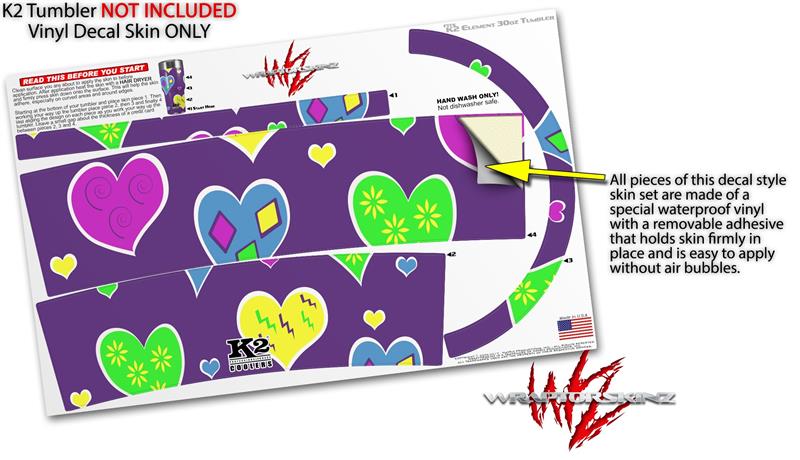 Skin Decal Wrap for K2 Element Tumbler 30oz - Crazy Hearts (TUMBLER NOT INCLUDED) by WraptorSkinz