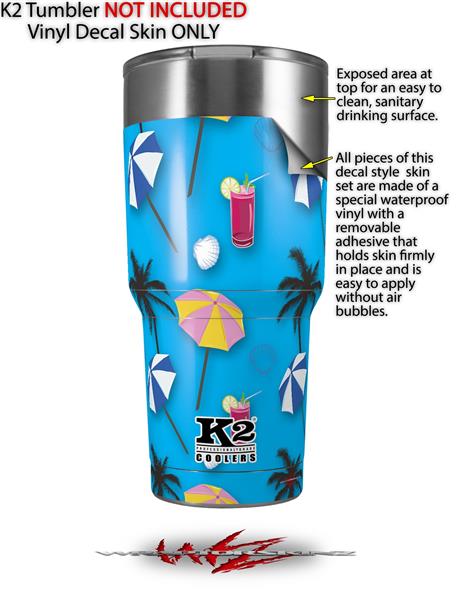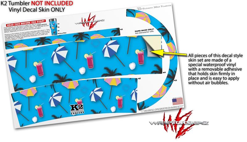 Skin Decal Wrap for K2 Element Tumbler 30oz - Beach Party Umbrellas Blue Medium (TUMBLER NOT INCLUDED) by WraptorSkinz