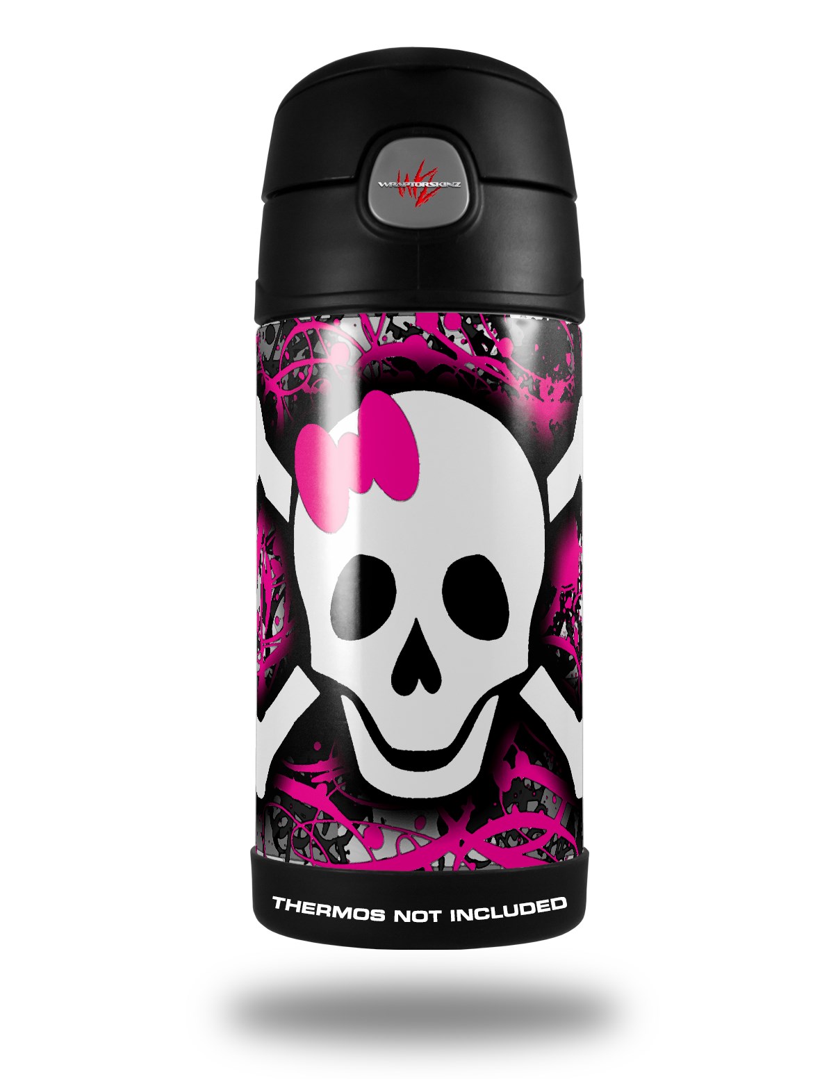 Skin Decal Wrap for Thermos Funtainer 12oz Bottle Splatter Girly Skull (BOTTLE NOT INCLUDED) by WraptorSkinz