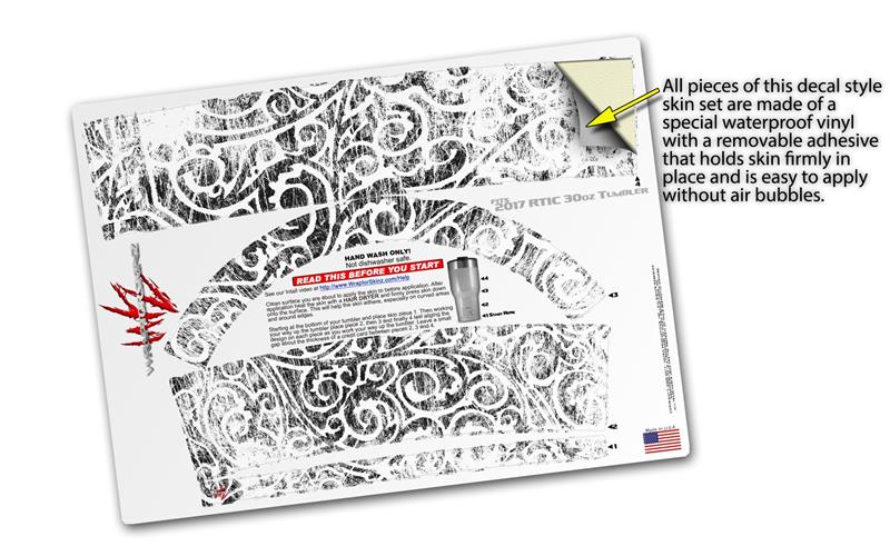 WraptorSkinz Skin Wrap compatible with 2017 and newer RTIC Tumblers 30oz Folder Doodles White (TUMBLER NOT INCLUDED)