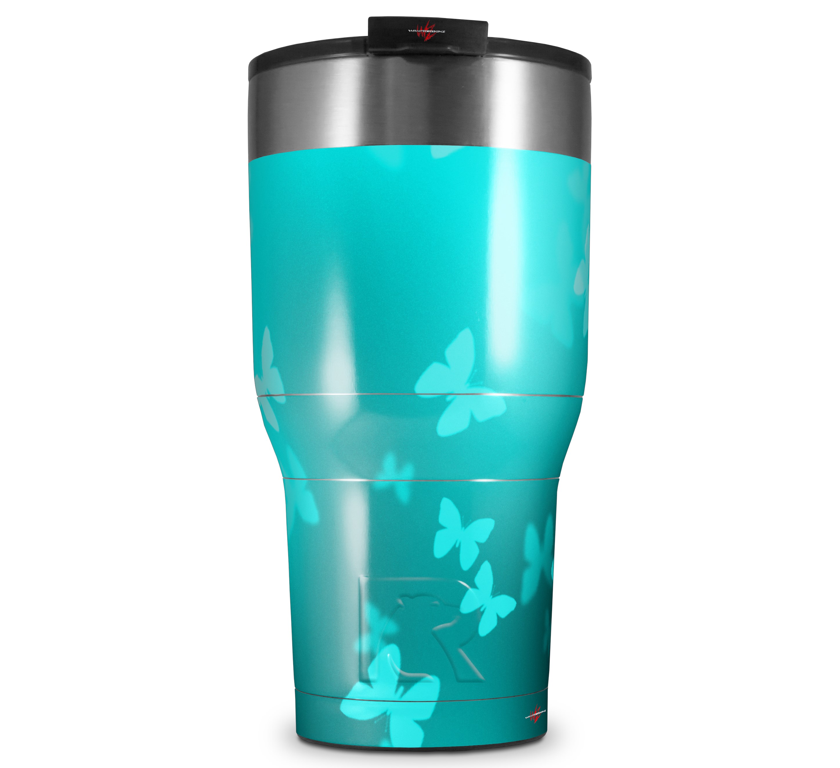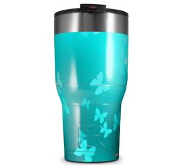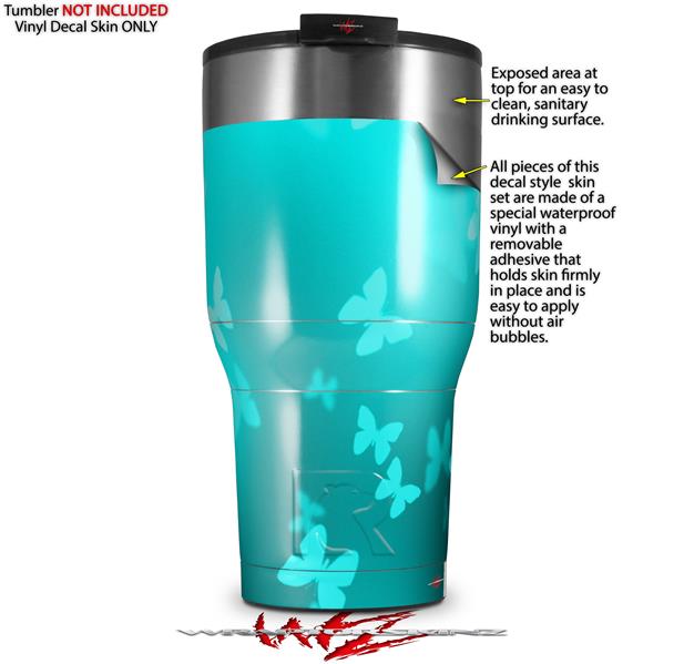 WraptorSkinz Skin Wrap compatible with 2017 and newer RTIC Tumblers 30oz Bokeh Butterflies Neon Teal (TUMBLER NOT INCLUDED)