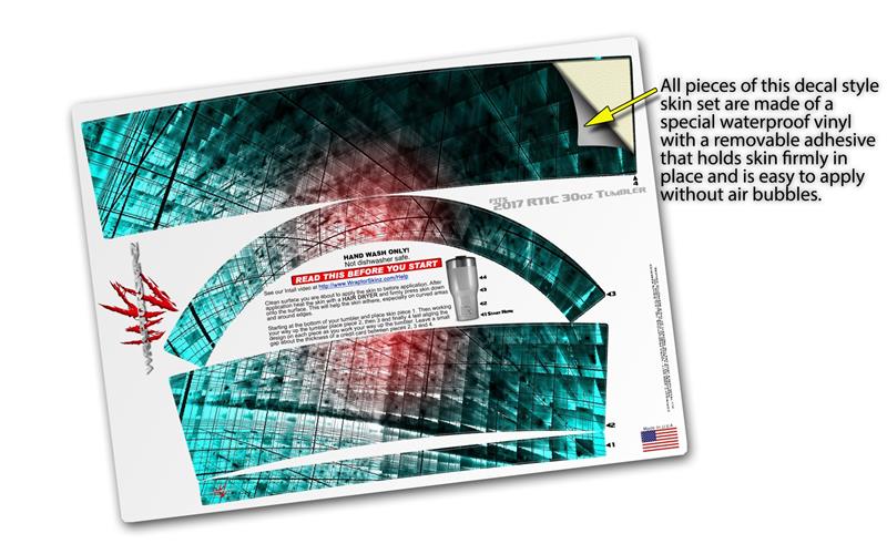 WraptorSkinz® skin wraps for 2017 RTIC Tumblers are printed using superb photo quality designs and vibrant colors printed with special fade resistant inks that last even in direct sun for years. WraptorSkinz® are a composite of two layers of commercial grade materials. The bottom layer is a soft, flexible vinyl with a special removable adhesive that is easily positioned, applied without air bubbles. Next we print the bottom layer with UV protected, fade resistant inks that deliver superb photo quality designs in vibrant colors. Finally we bond a professional grade laminate over the entire skin adding a glossy protective finish.