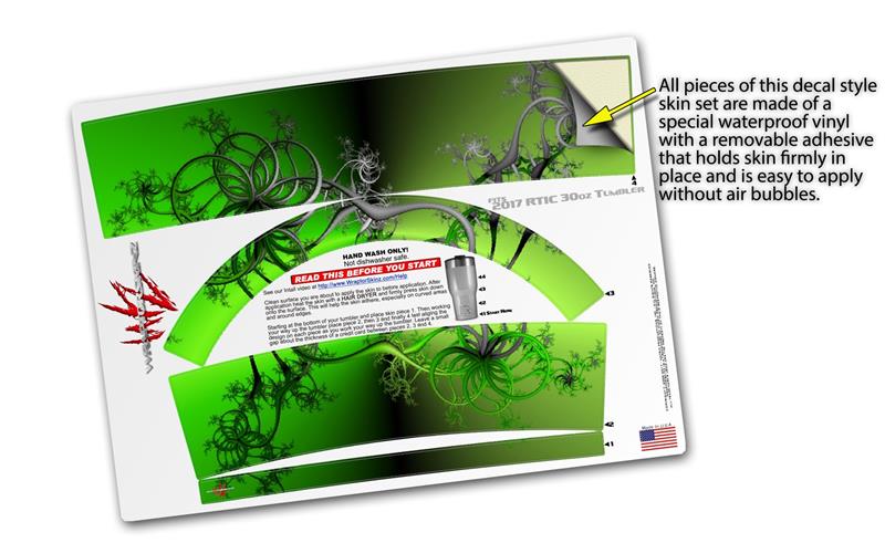 WraptorSkinz® skin wraps for 2017 RTIC Tumblers are printed using superb photo quality designs and vibrant colors printed with special fade resistant inks that last even in direct sun for years. WraptorSkinz® are a composite of two layers of commercial grade materials. The bottom layer is a soft, flexible vinyl with a special removable adhesive that is easily positioned, applied without air bubbles. Next we print the bottom layer with UV protected, fade resistant inks that deliver superb photo quality designs in vibrant colors. Finally we bond a professional grade laminate over the entire skin adding a glossy protective finish.