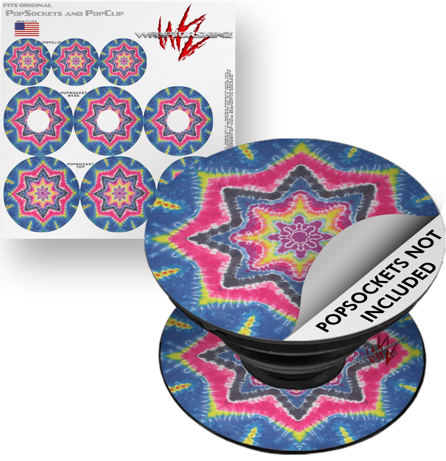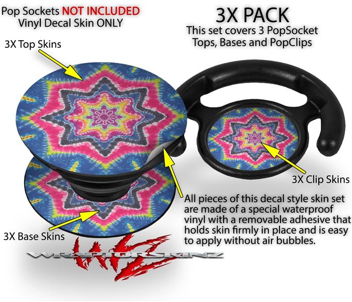 Decal Style Vinyl Skin Wrap 3 Pack for PopSockets Tie Dye Star 101 (POPSOCKET NOT INCLUDED)