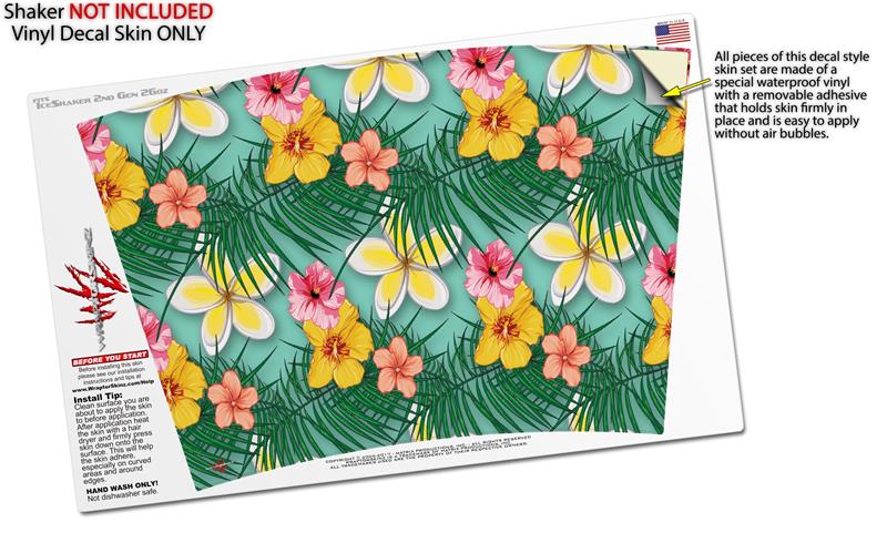 Skin Wrap Decal for IceShaker 2nd Gen 26oz Beach Flowers 02 Seafoam Green (SHAKER NOT INCLUDED)