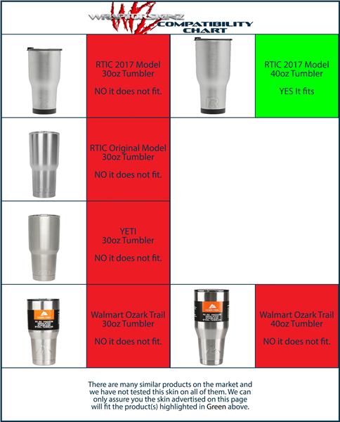 WraptorSkinz® skin wraps for 2017 RTIC Tumblers are printed using superb photo quality designs and vibrant colors printed with special fade resistant inks that last even in direct sun for years. WraptorSkinz® are a composite of two layers of commercial grade materials. The bottom layer is a soft, flexible vinyl with a special removable adhesive that is easily positioned, applied without air bubbles. Next we print the bottom layer with UV protected, fade resistant inks that deliver superb photo quality designs in vibrant colors. Finally we bond a professional grade laminate over the entire skin adding a glossy protective finish.