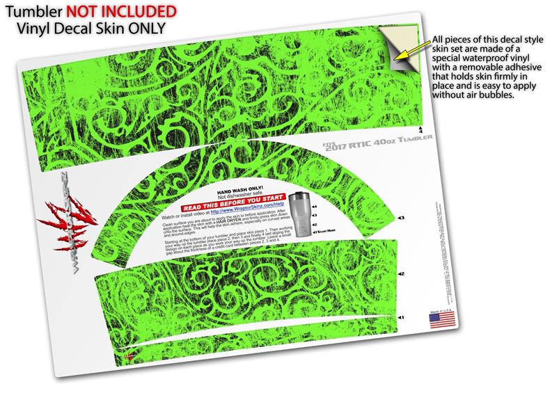 Skin Wrap Decal for 2017 RTIC Tumblers 40oz Folder Doodles Neon Green (TUMBLER NOT INCLUDED)