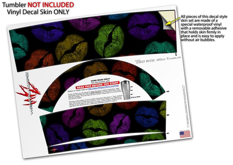Skin Wrap Decal for 2017 RTIC Tumblers 40oz Rainbow Lips Black (TUMBLER NOT INCLUDED)