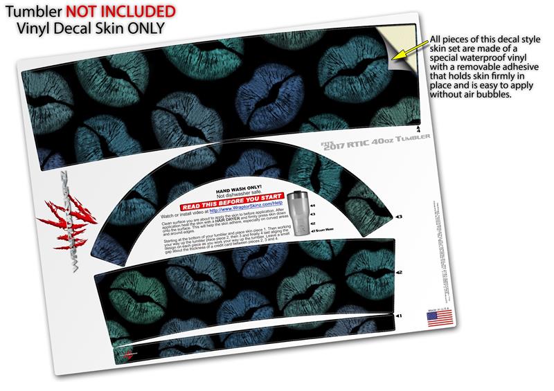 Skin Wrap Decal for 2017 RTIC Tumblers 40oz Blue Green And Black Lips (TUMBLER NOT INCLUDED)