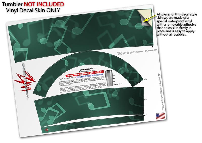 Skin Wrap Decal for 2017 RTIC Tumblers 40oz Bokeh Music Seafoam Green (TUMBLER NOT INCLUDED)