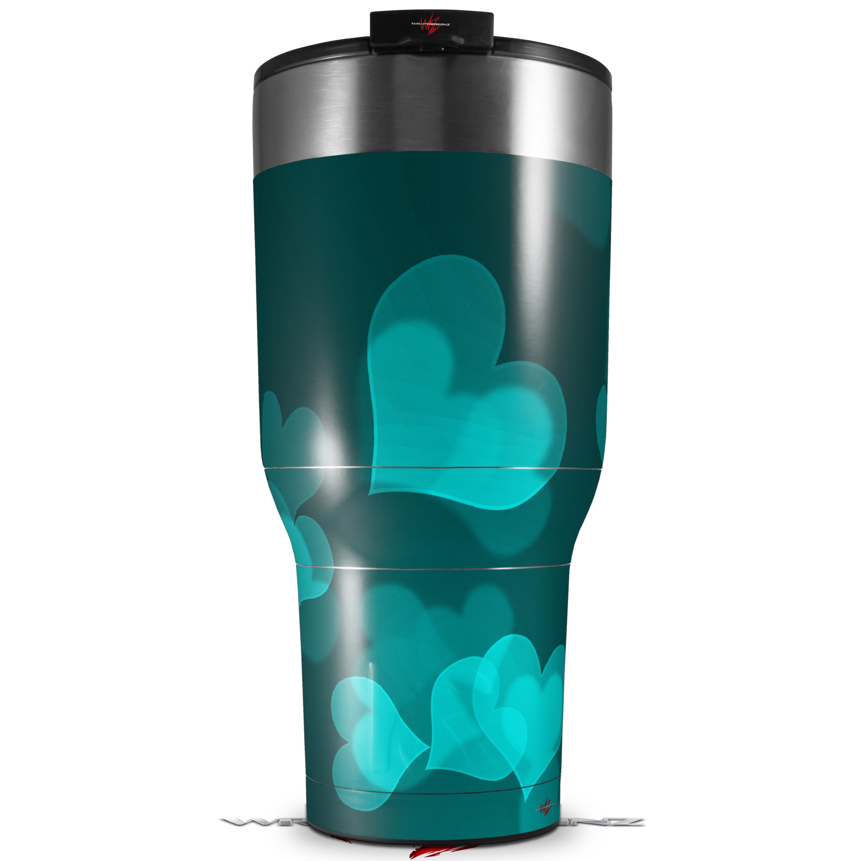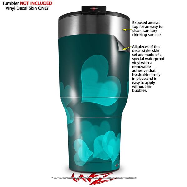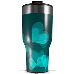 Skin Wrap Decal for 2017 RTIC Tumblers 40oz Bokeh Hearts Neon Teal (TUMBLER NOT INCLUDED)