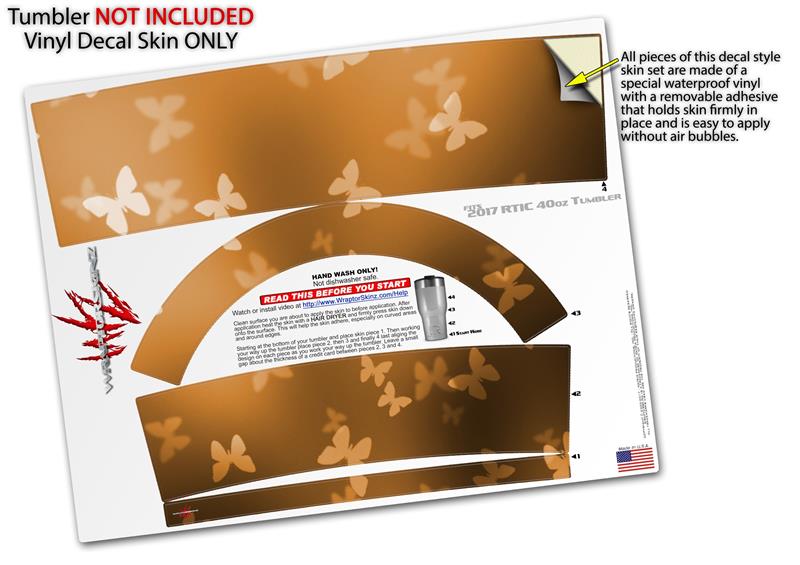 Skin Wrap Decal for 2017 RTIC Tumblers 40oz Bokeh Butterflies Orange (TUMBLER NOT INCLUDED)