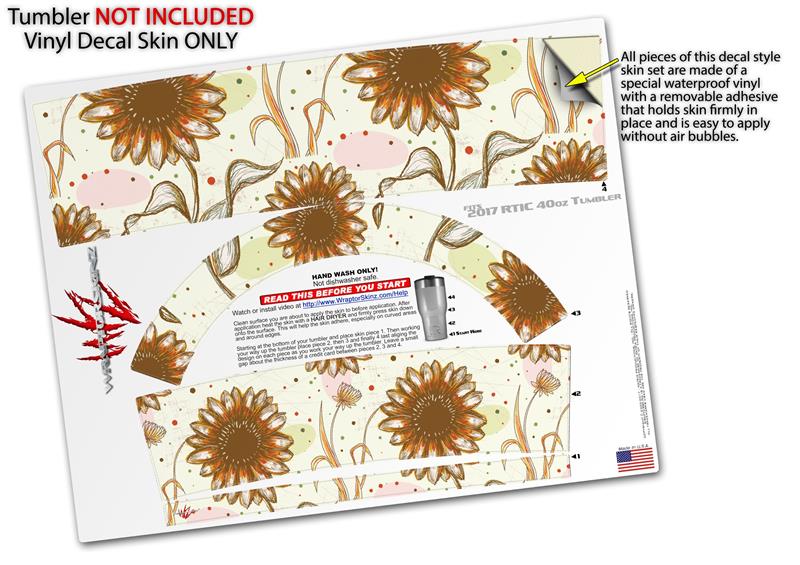 Skin Wrap Decal for 2017 RTIC Tumblers 40oz Flowers Pattern 19 (TUMBLER NOT INCLUDED)