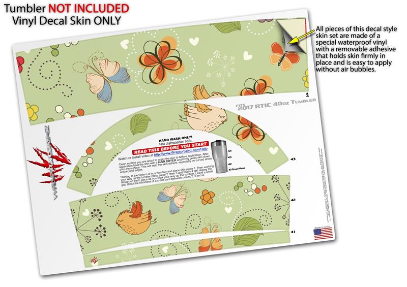 Skin Wrap Decal for 2017 RTIC Tumblers 40oz Birds Butterflies and Flowers (TUMBLER NOT INCLUDED)