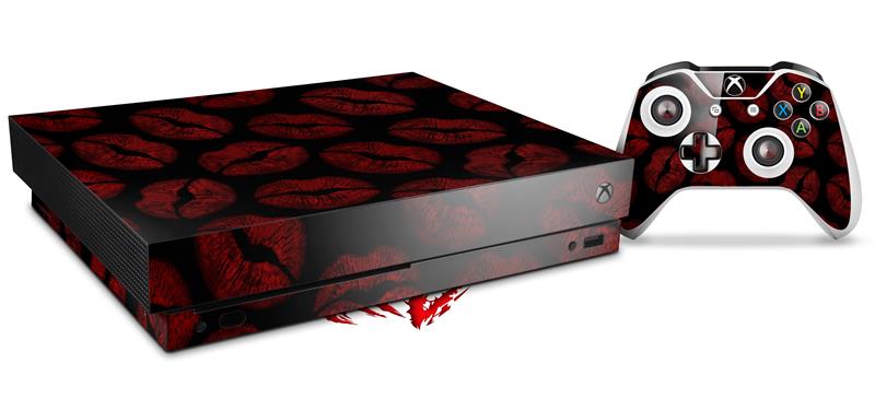 Skin Wrap for XBOX One X Console and Controller Red And Black Lips