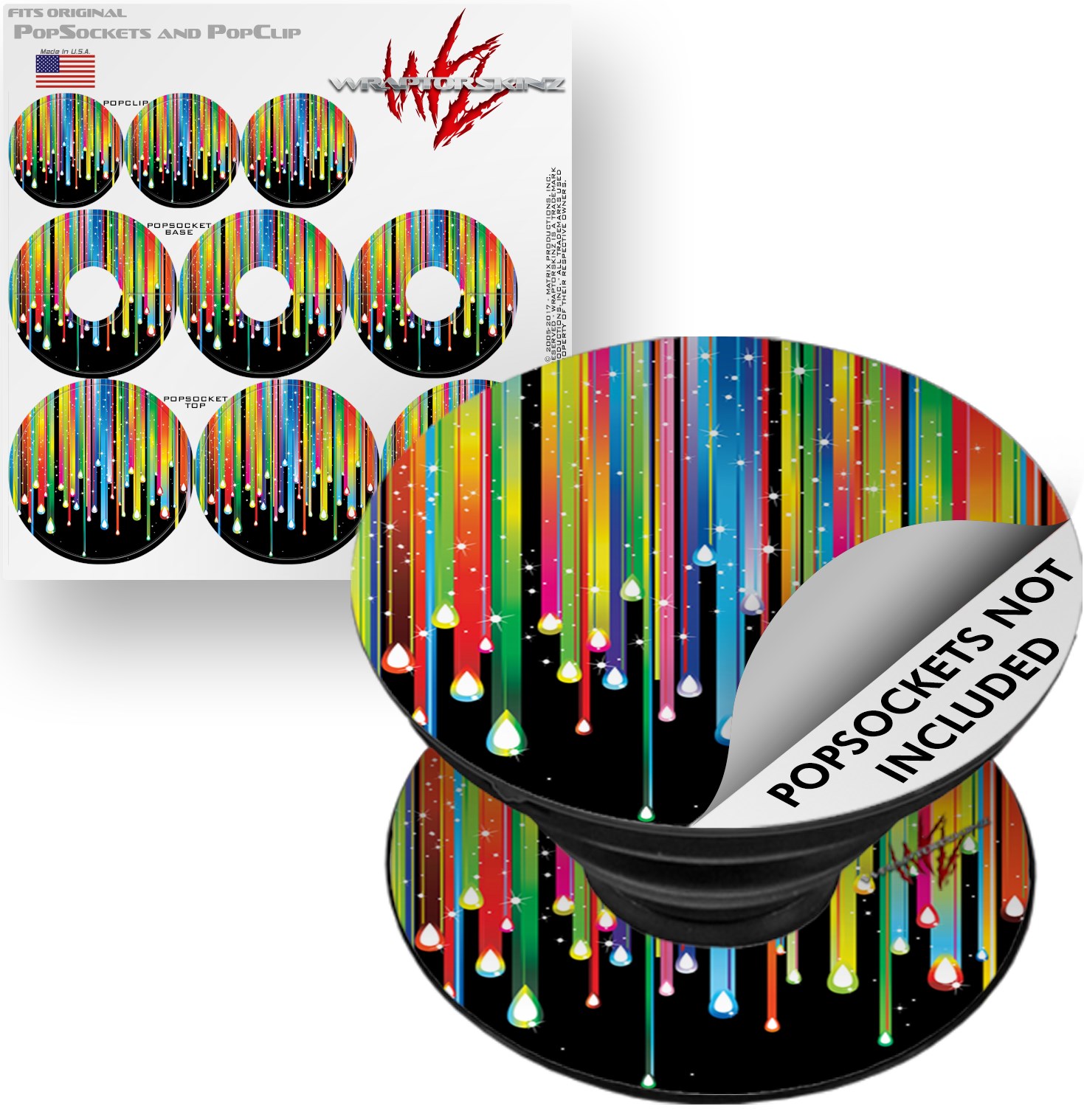 WraptorSkinz® skin decals are printed using superb photo quality designs and vibrant colors printed with special fade resistant inks that last even in direct sun for years. WraptorSkinz® are a composite of two layers of commercial grade materials. The bottom layer is a soft, flexible vinyl with a special removable adhesive that is easily positioned, applied without air bubbles. Next, we print the bottom layer with UV protected, fade resistant inks that deliver superb photo quality designs in vibrant colors. Finally, we bond a professional grade laminate over the entire skin adding a glossy protective finish. This WraptorSkinz skin accessory is not affiliated with, endorsed by and is in no way connected with the PopSocket products or brand.