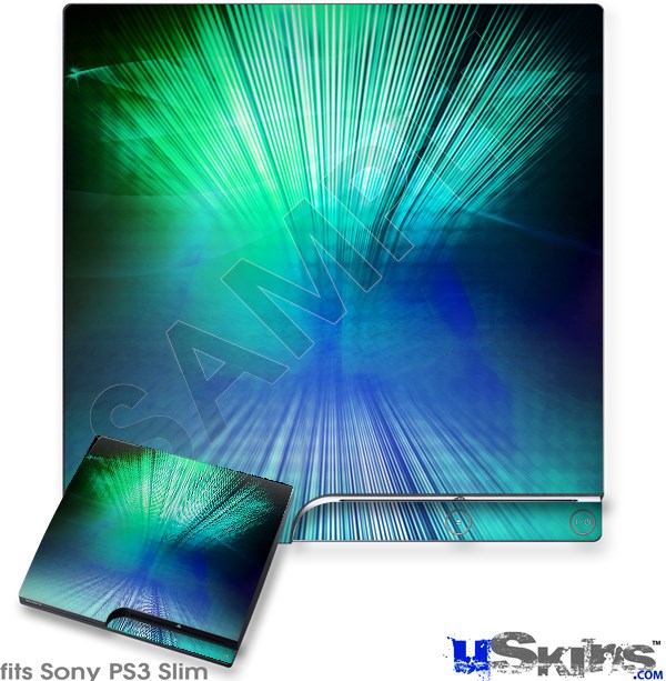 Decal Skin compatible with Sony PS3 Slim Bent Light Seafoam Greenish