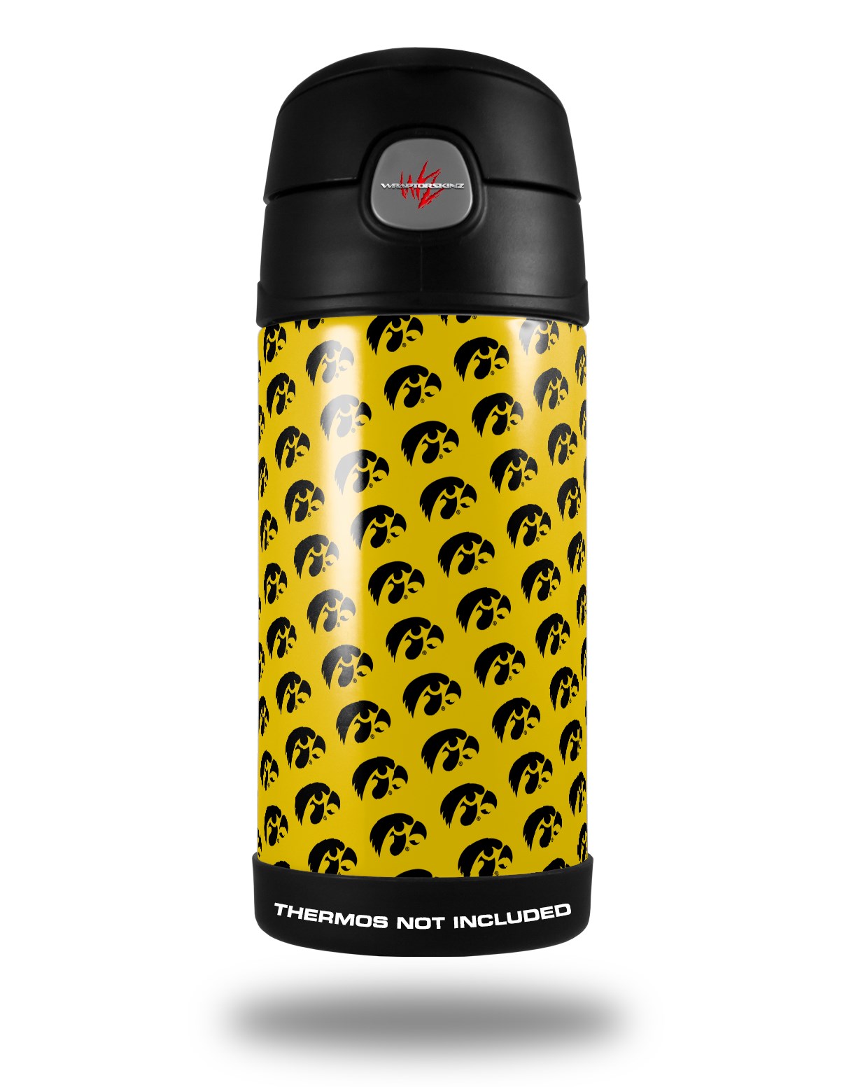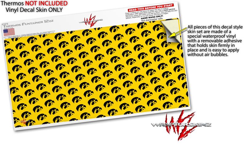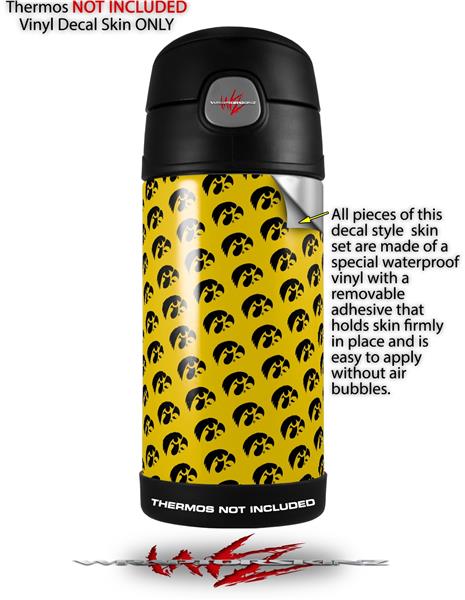 Skin Decal Wrap for Thermos Funtainer 12oz Bottle Iowa Hawkeyes Tigerhawk Tiled 06 Black on Gold (BOTTLE NOT INCLUDED)