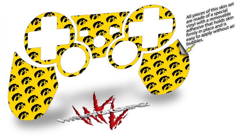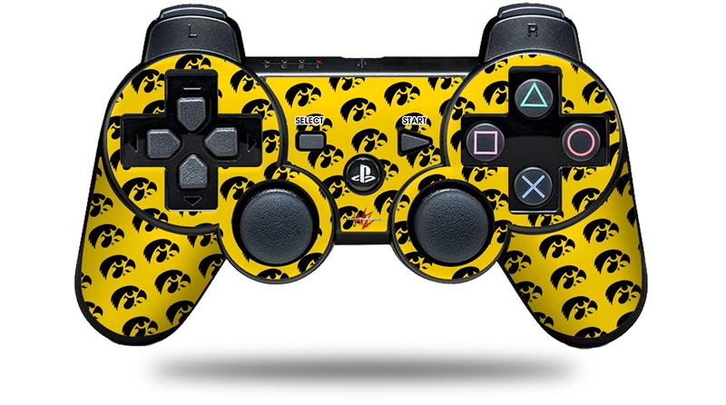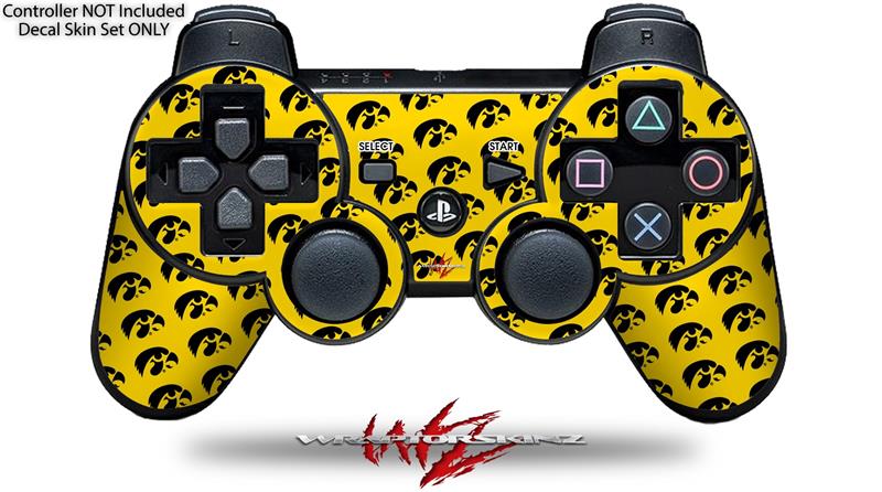 Sony PS3 Controller Decal Style Skin - Iowa Hawkeyes Tigerhawk Tiled 06 Black on Gold (CONTROLLER NOT INCLUDED)