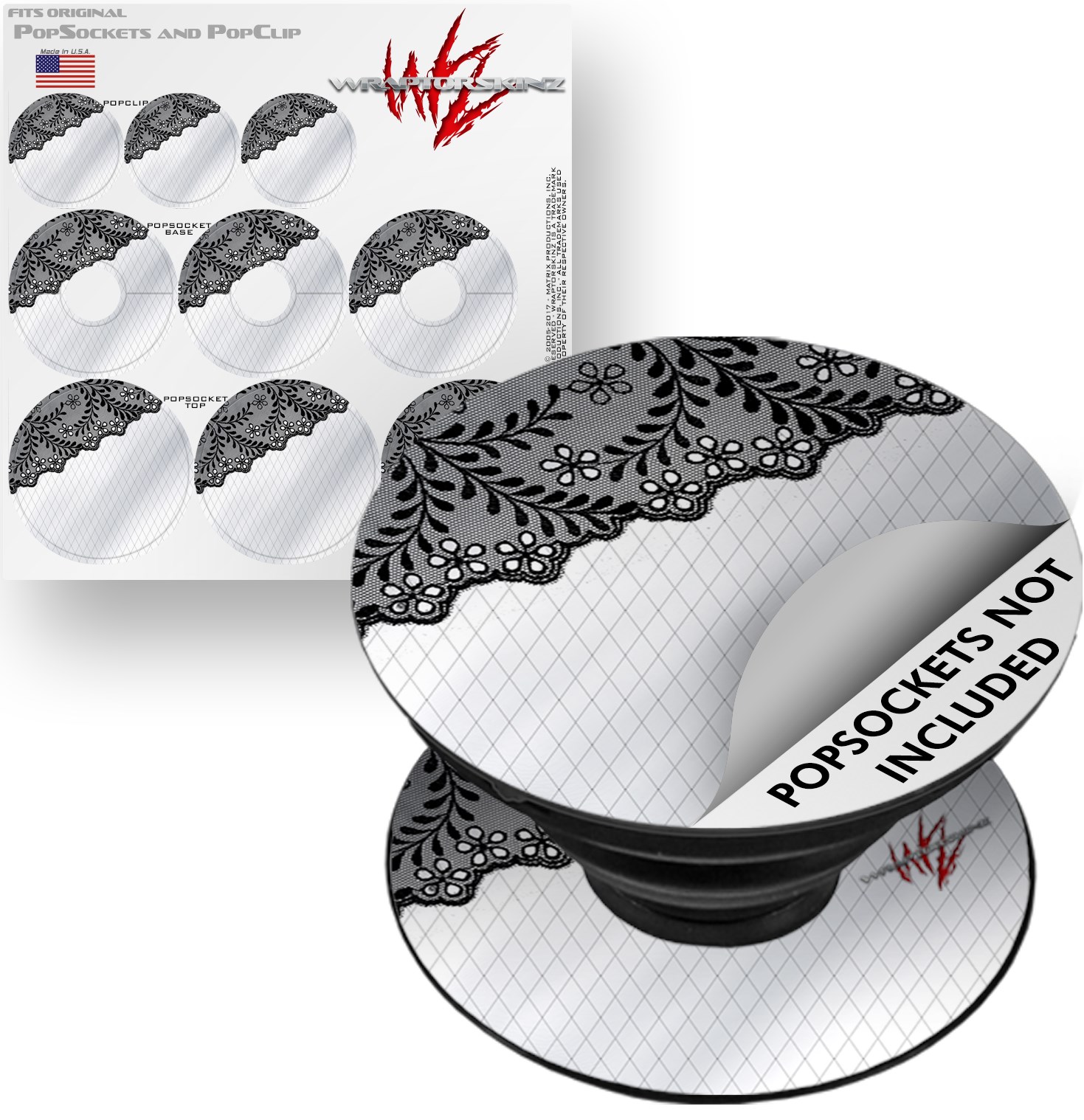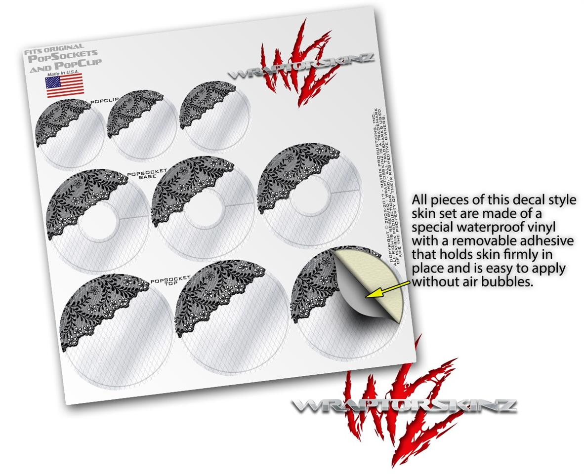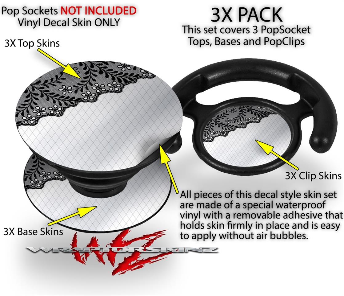 Decal Style Vinyl Skin Wrap 3 Pack for PopSockets Black and White Lace (POPSOCKET NOT INCLUDED)