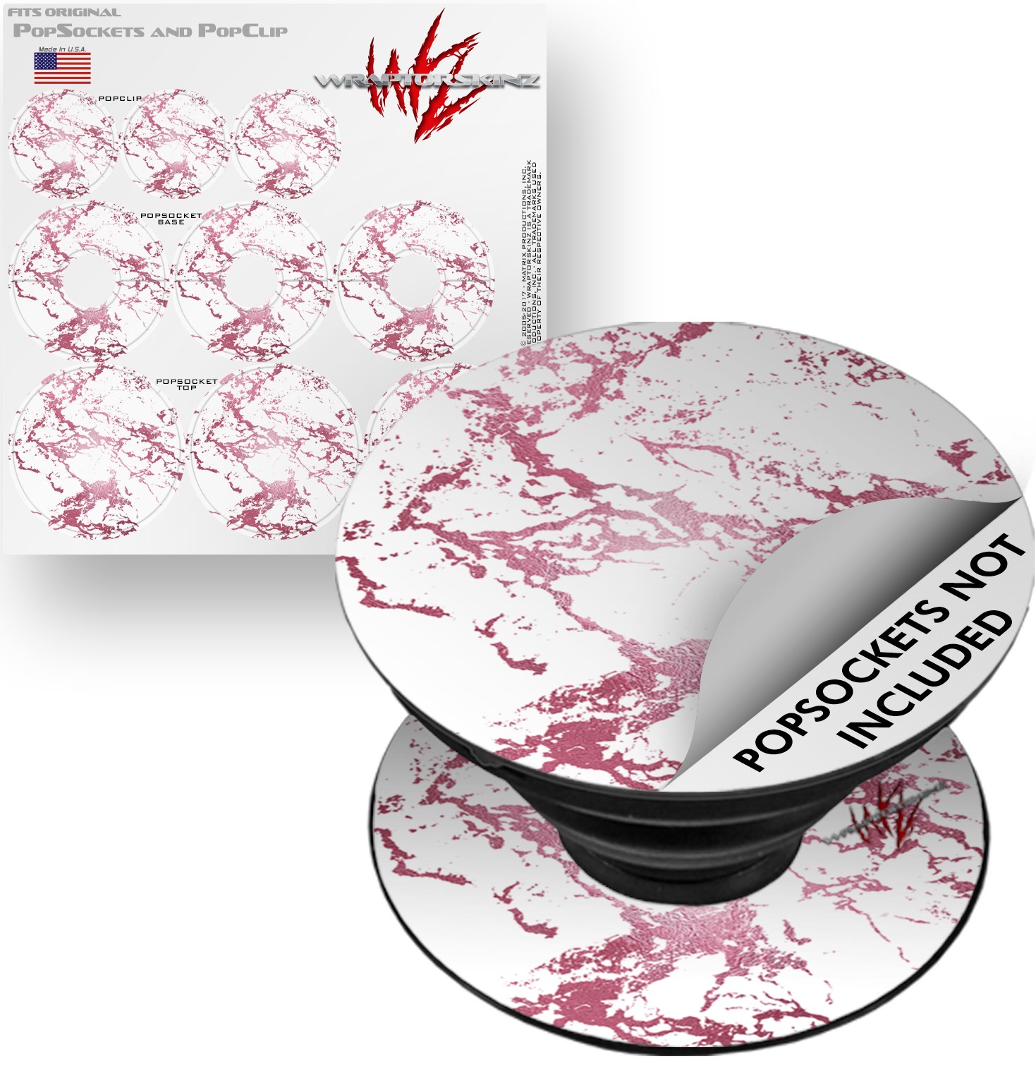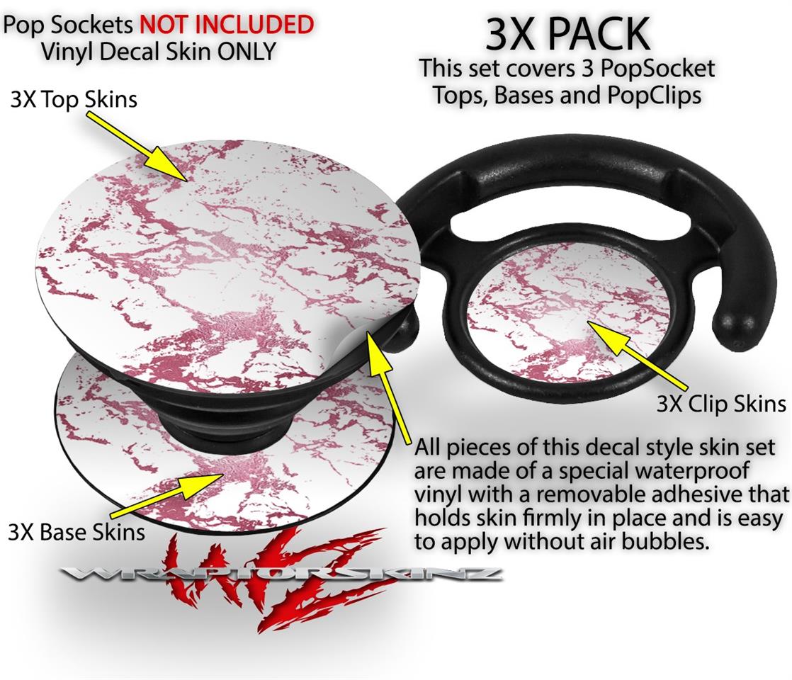 Decal Style Vinyl Skin Wrap 3 Pack for PopSockets Pink and White Gilded Marble (POPSOCKET NOT INCLUDED)