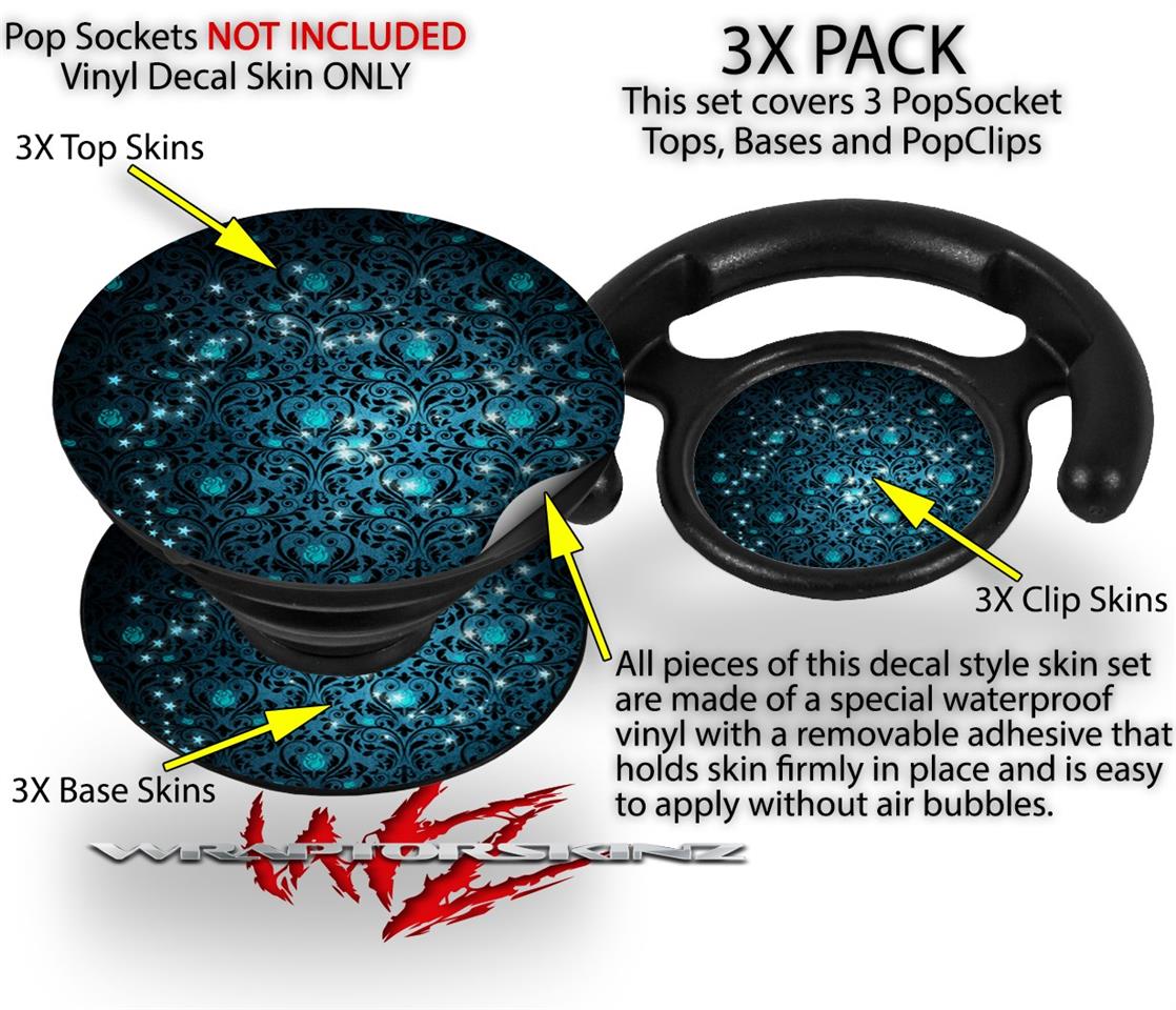 Decal Style Vinyl Skin Wrap 3 Pack for PopSockets Blue Flower Bomb Starry Night (POPSOCKET NOT INCLUDED)