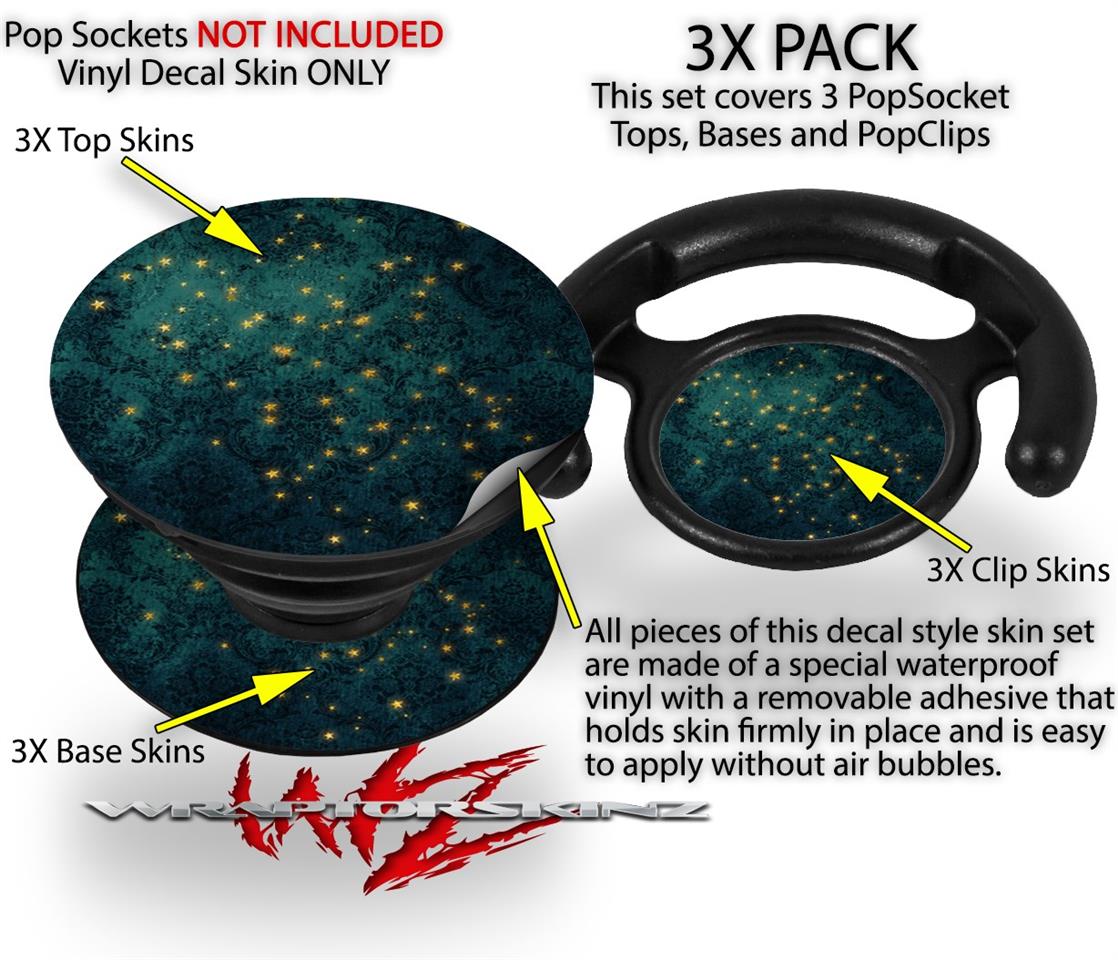 Decal Style Vinyl Skin Wrap 3 Pack for PopSockets Green Starry Night (POPSOCKET NOT INCLUDED)