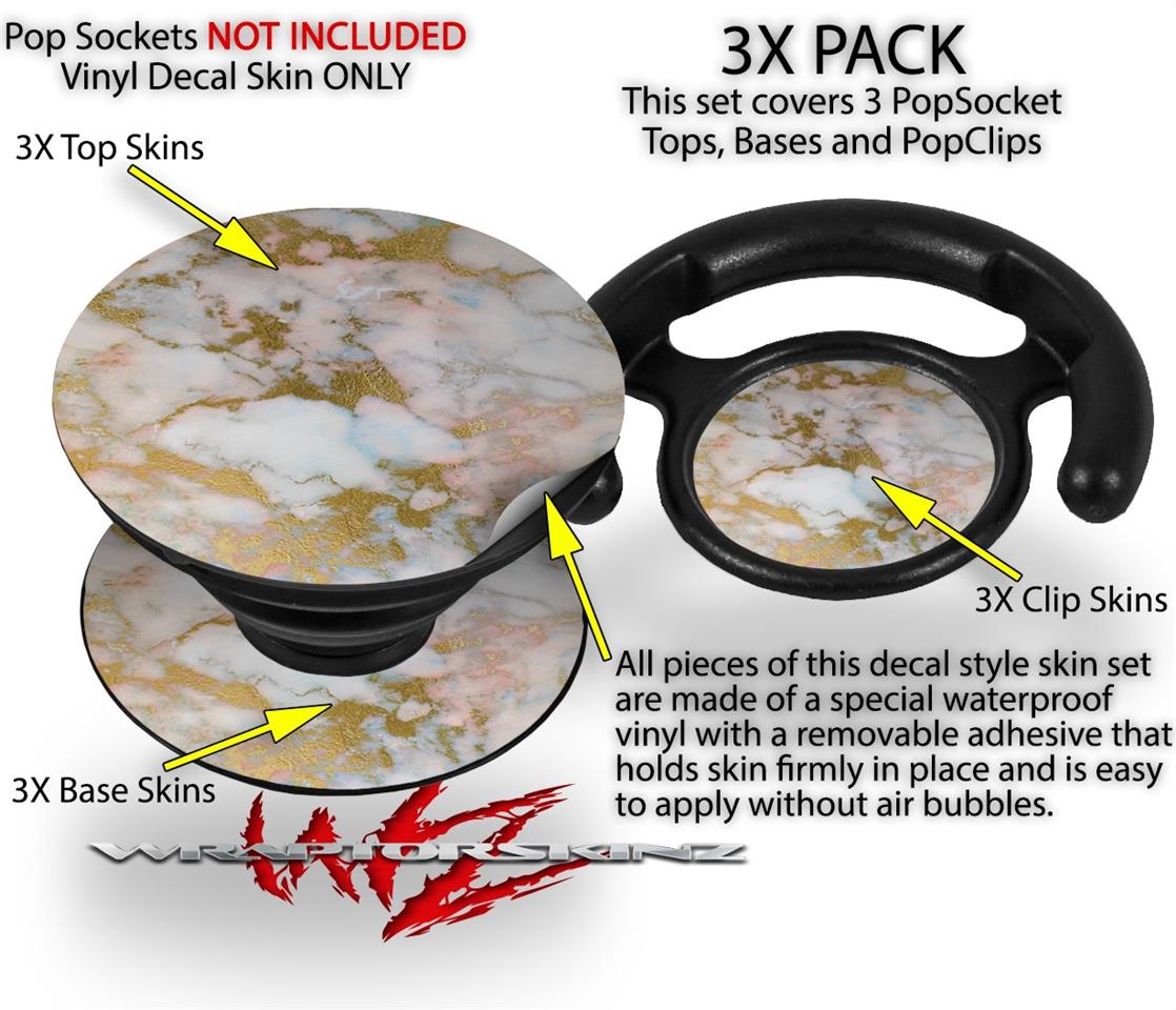 Decal Style Vinyl Skin Wrap 3 Pack for PopSockets Pastel Gilded Marble (POPSOCKET NOT INCLUDED)
