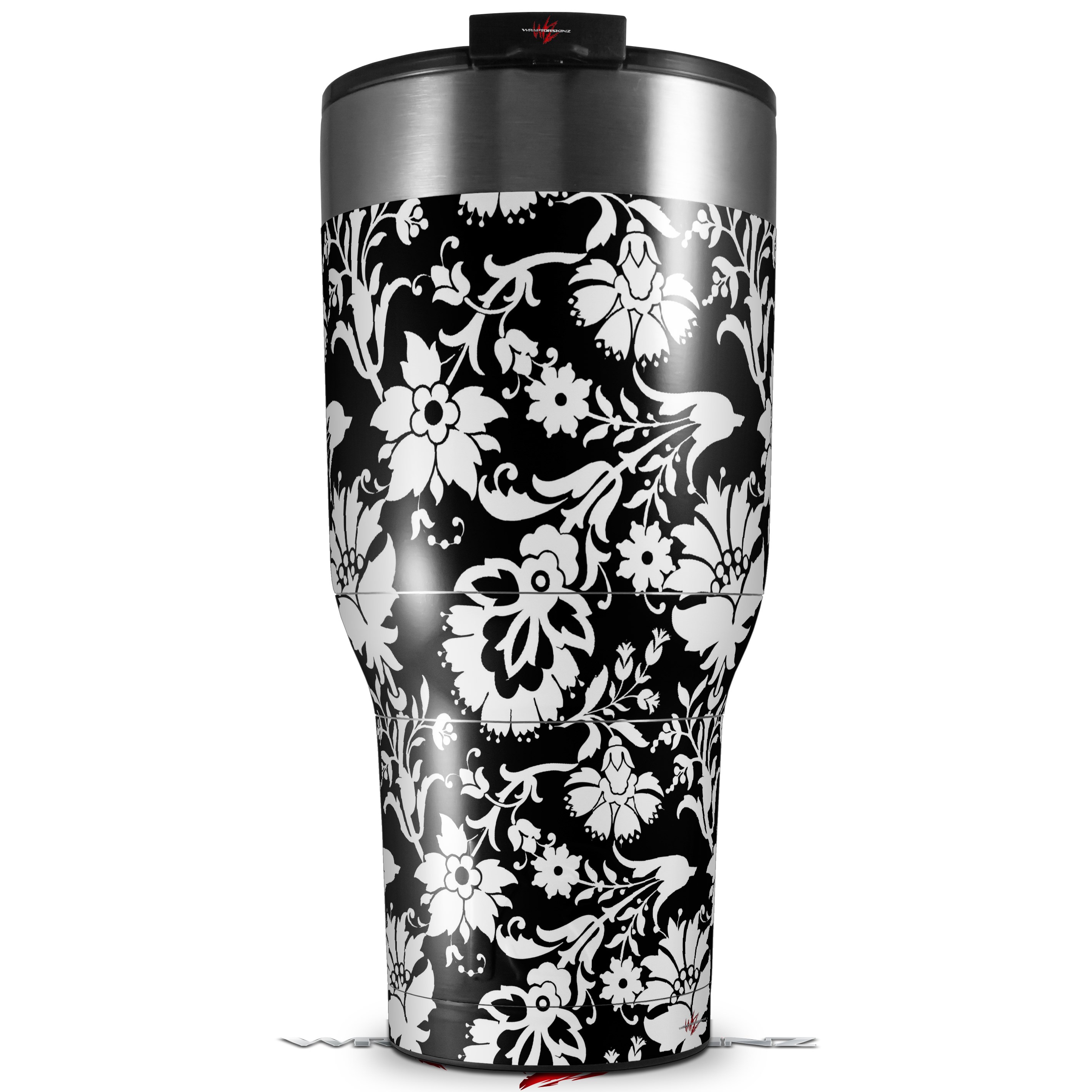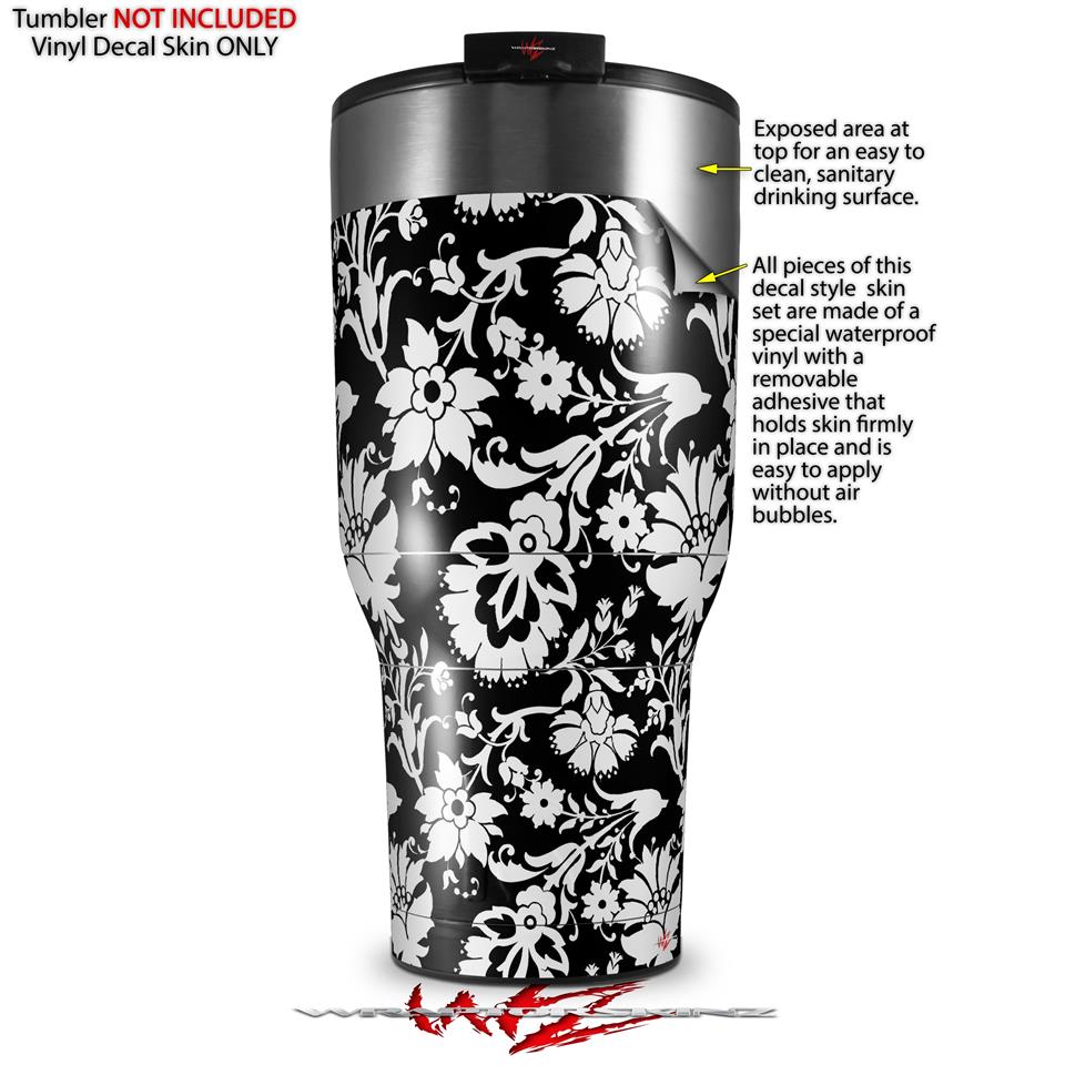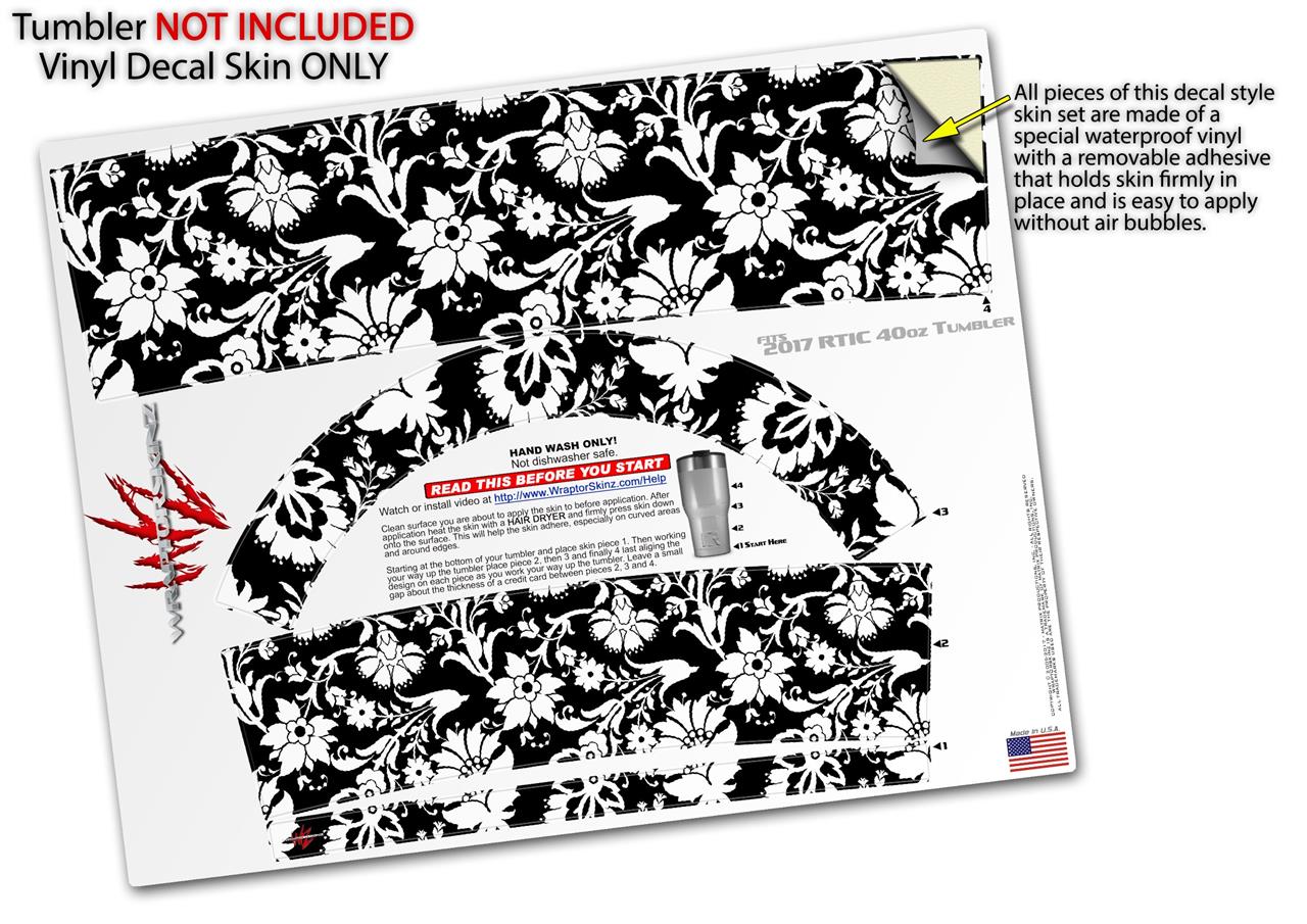 Skin Wrap Decal for 2017 RTIC Tumblers 40oz Black and White Flower (TUMBLER NOT INCLUDED)
