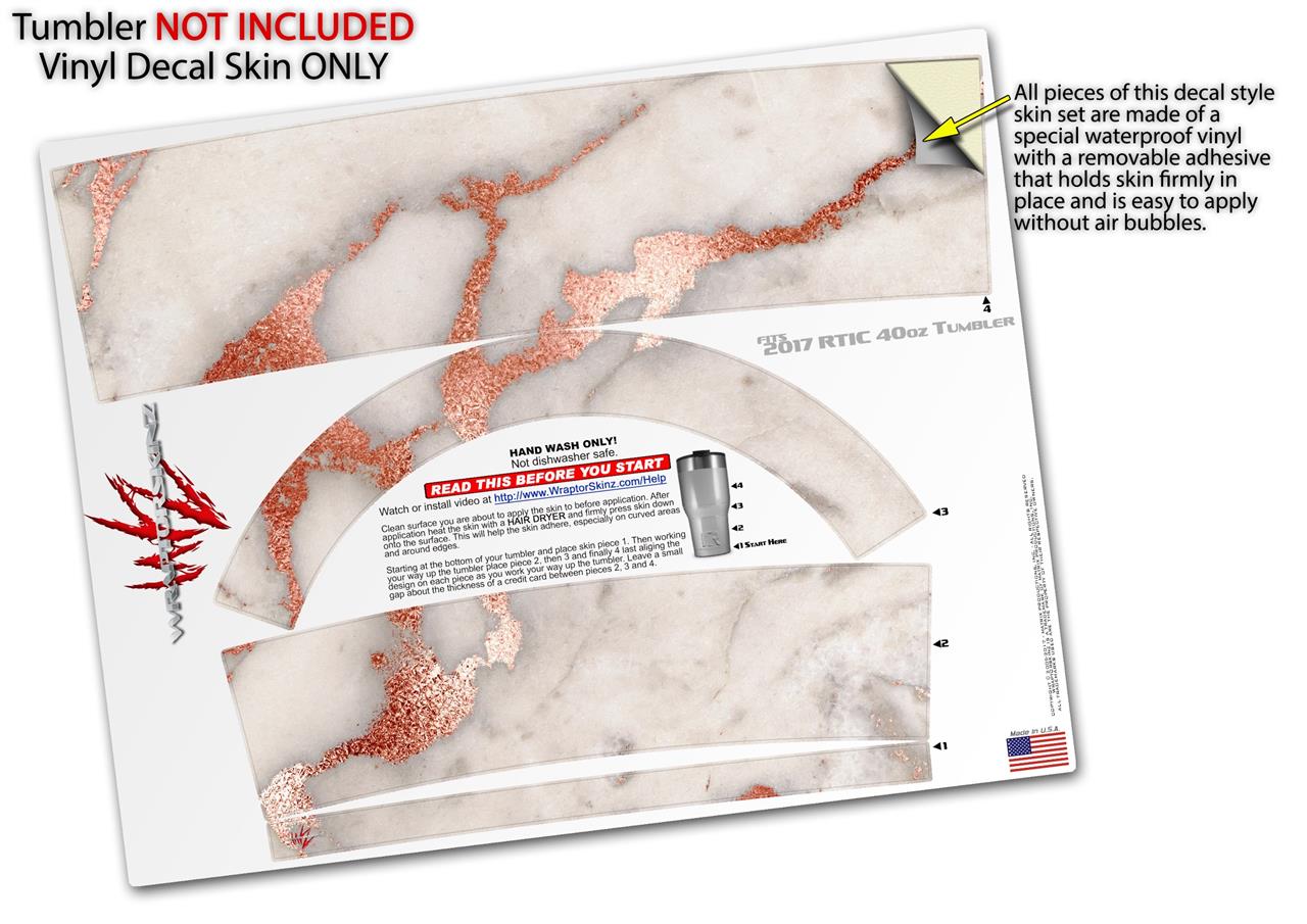 Skin Wrap Decal for 2017 RTIC Tumblers 40oz Rose Gold Gilded Marble (TUMBLER NOT INCLUDED)