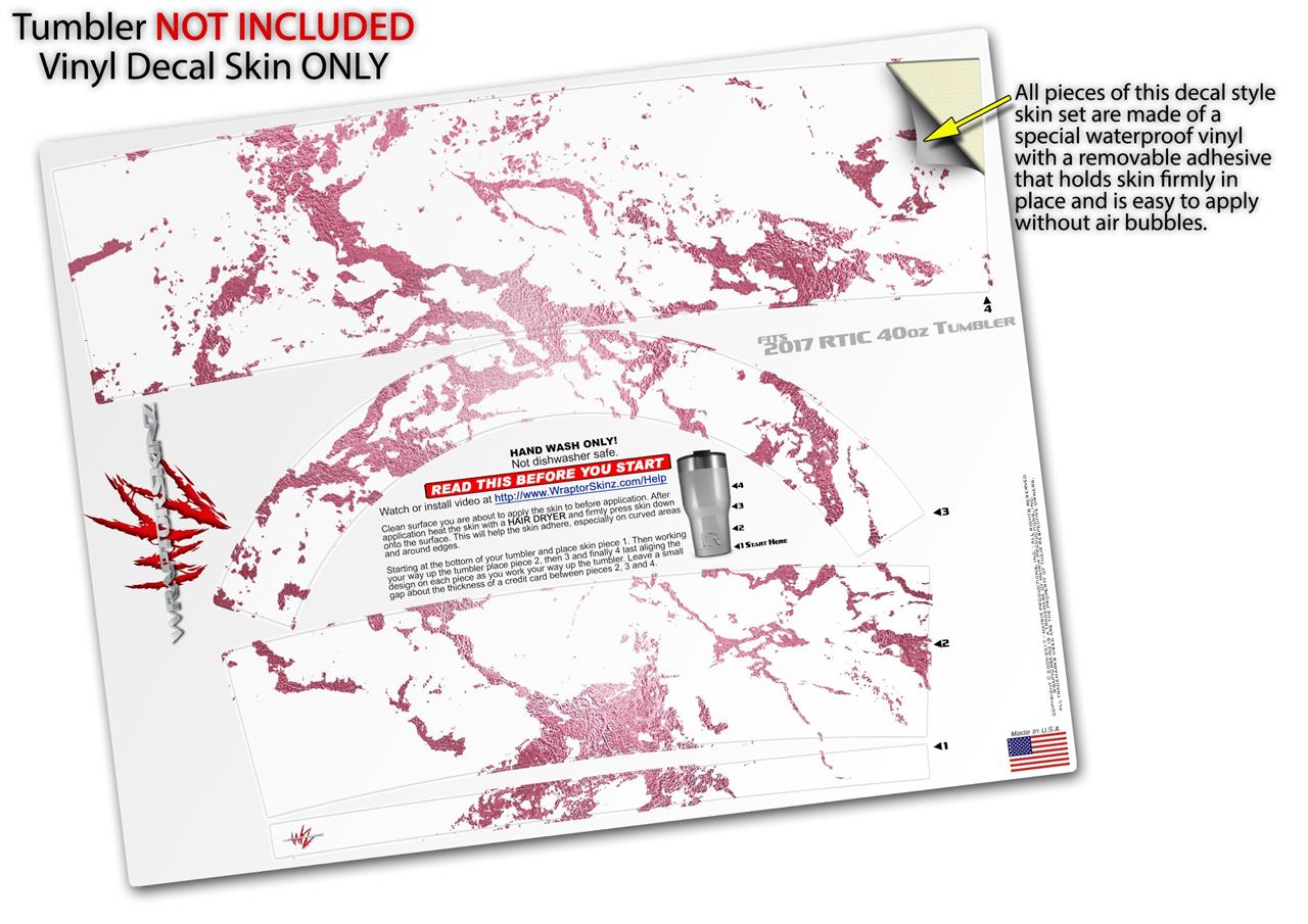 Skin Wrap Decal for 2017 RTIC Tumblers 40oz Pink and White Gilded Marble (TUMBLER NOT INCLUDED)