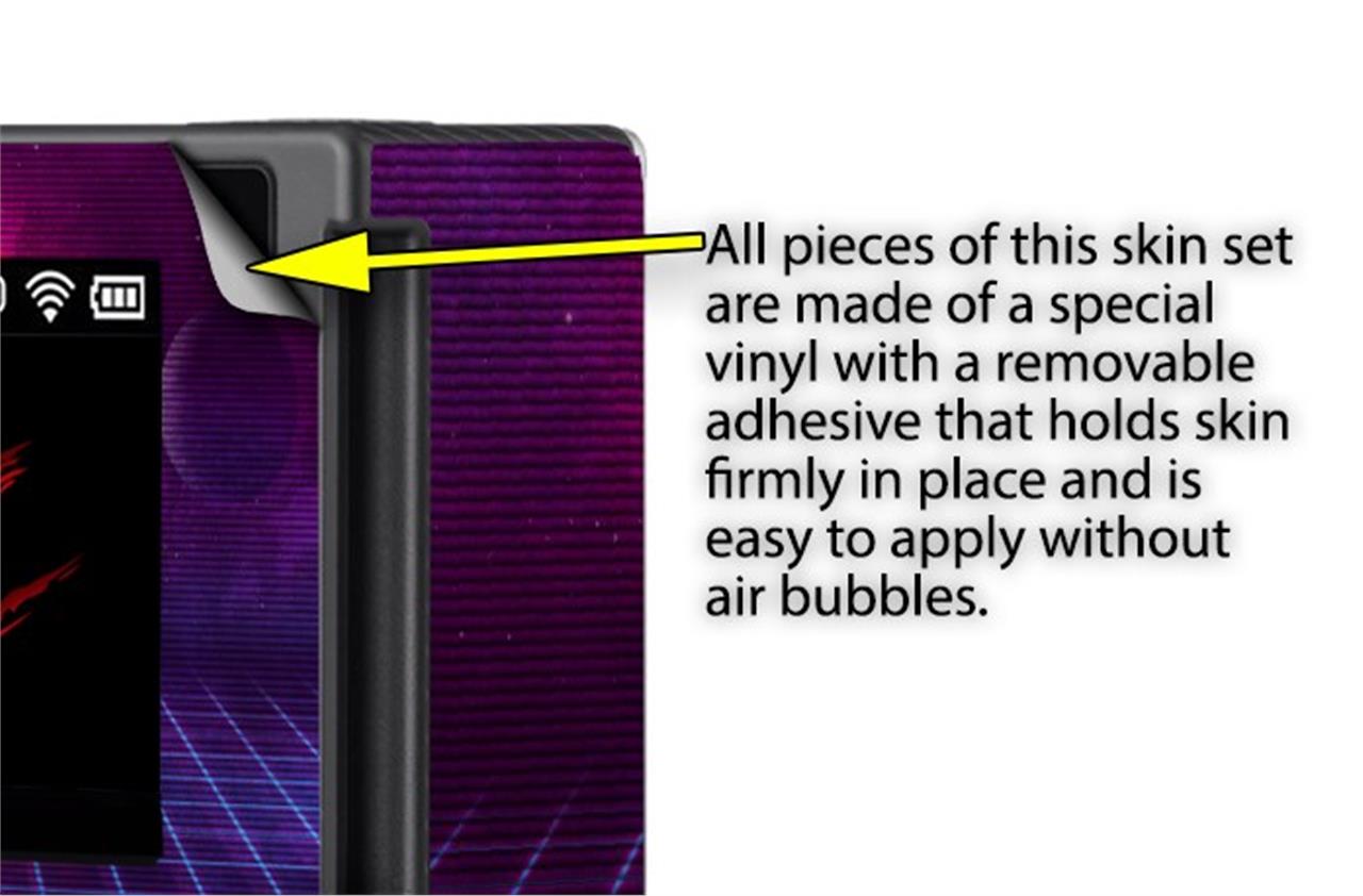 WraptorSkinz® skins are superb photo quality designs and vibrant colors printed with special Eco-Friendly, fade resistant inks. Our skins are self-adhering flexible vinyl skins that helps prevent scratches. Made of composite, multi-layered commercial grade materials. The bottom layer is made with a special removable adhesive that is easily positioned and applied without air bubbles. We print your design on the bottom layer then bond a professional grade laminate over the entire skin adding a glossy protective finish.